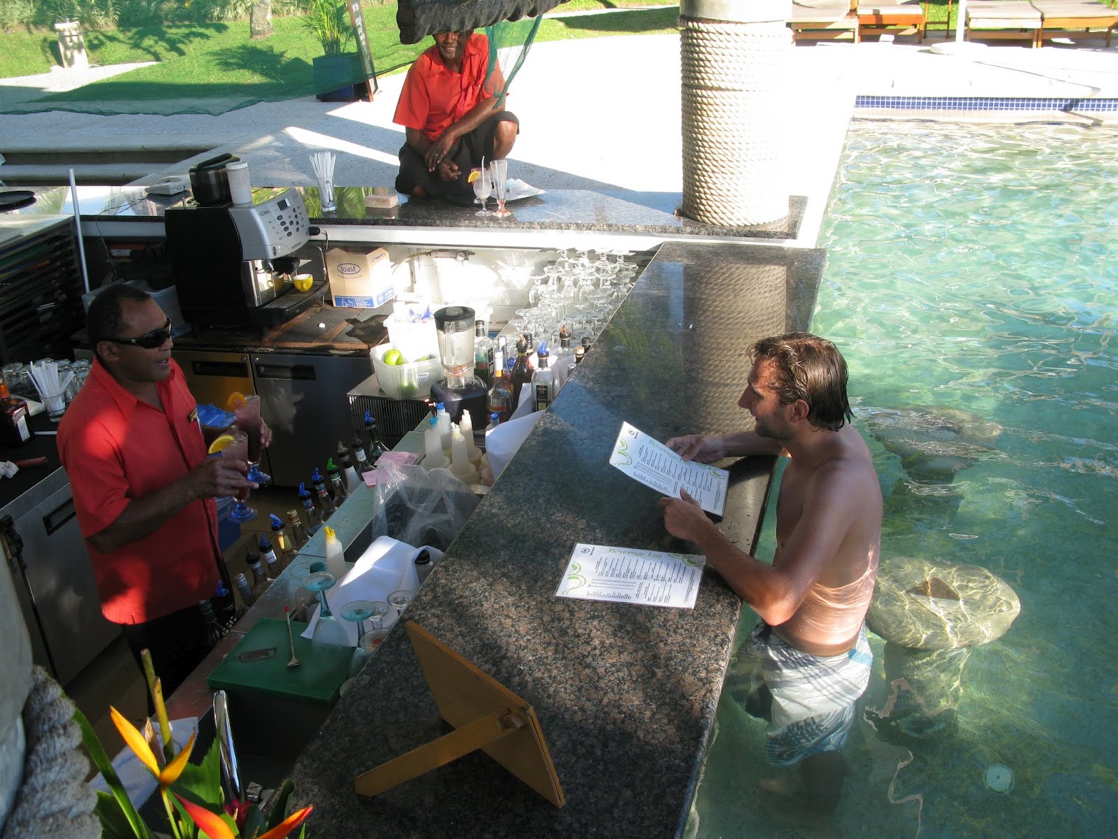 první deštivé dny na Fiji. Místo oběda jsme si dali pár drinků s ananasem
